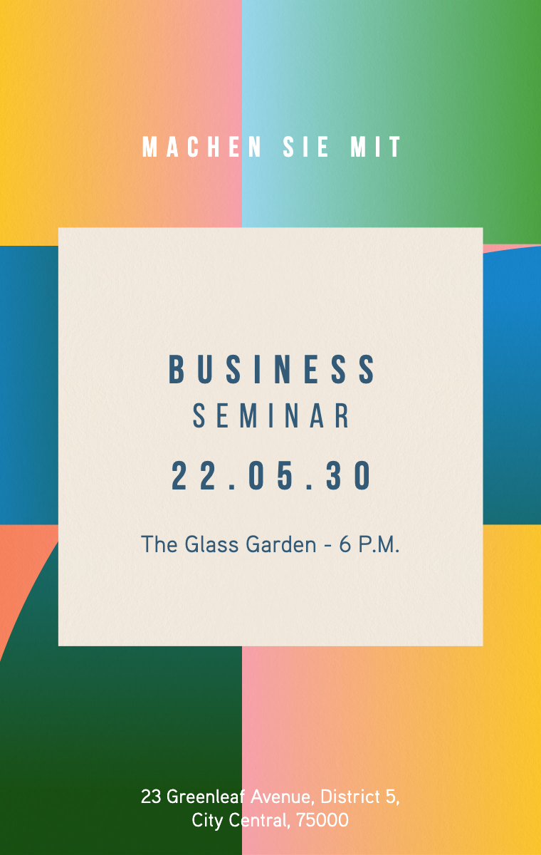Laden Sie zu Ihren Konferenzen, Teambuilding-Events oder Fortbildungen mit unseren professionellen, individuell anpassbaren digitalen Einladungen ein. Fügen Sie Ihr Logo hinzu, teilen Sie die Einladungen und verfolgen Sie kostenlos die Rückmeldungen.