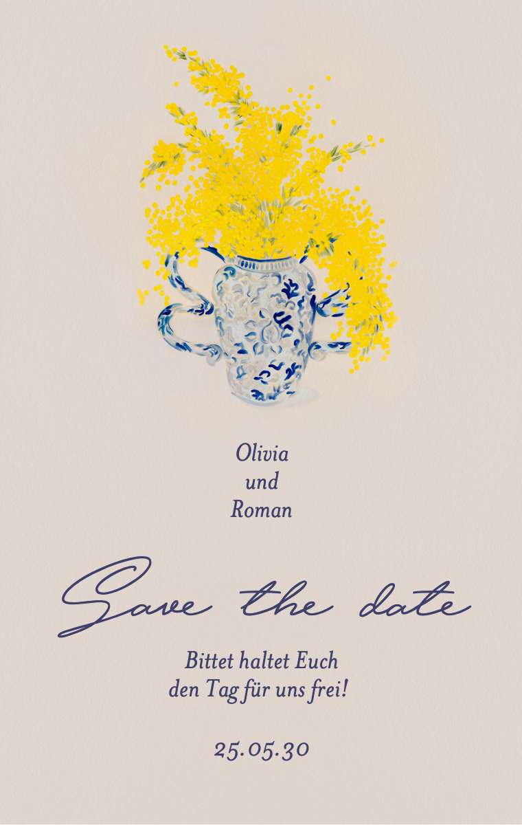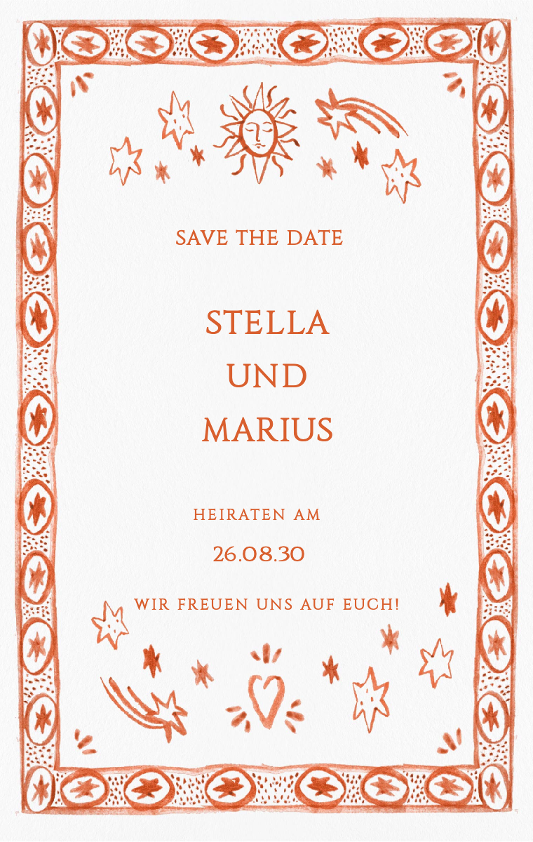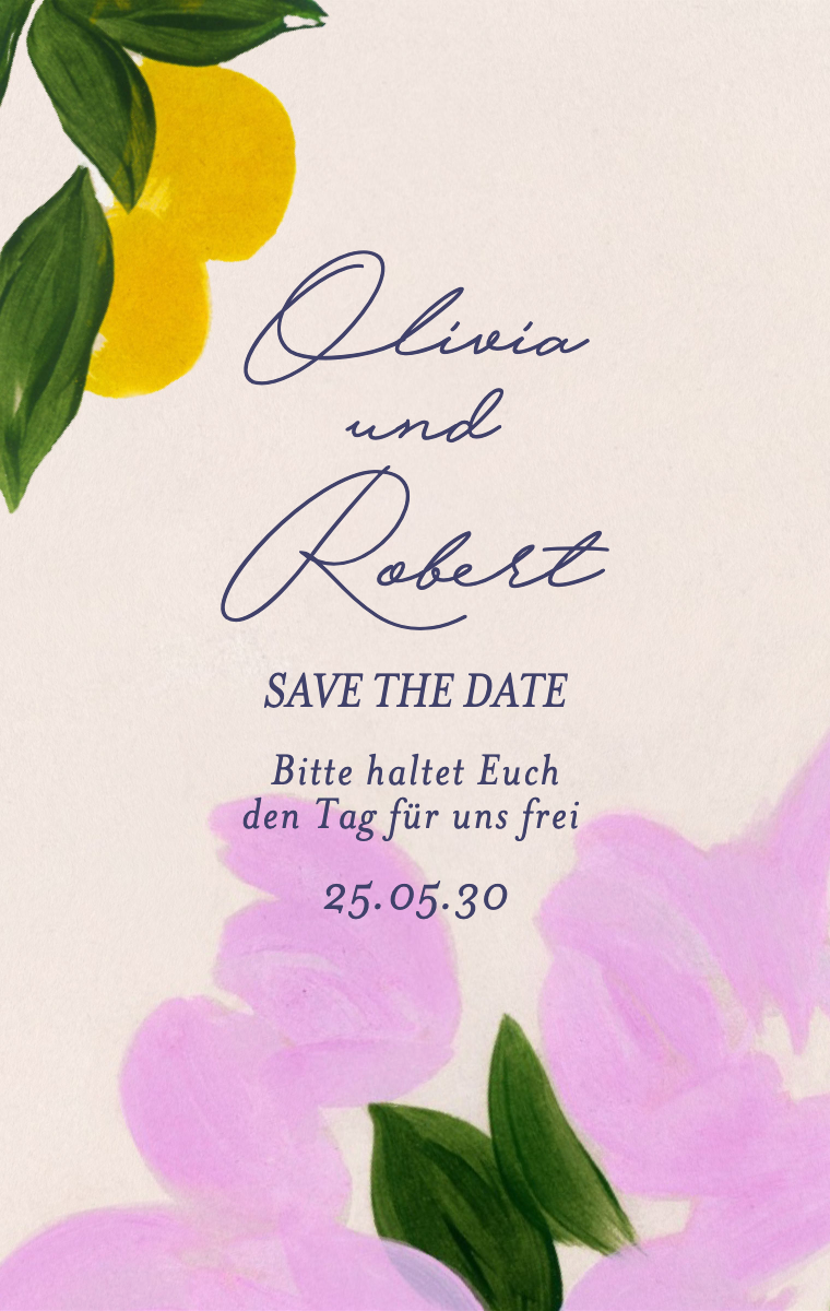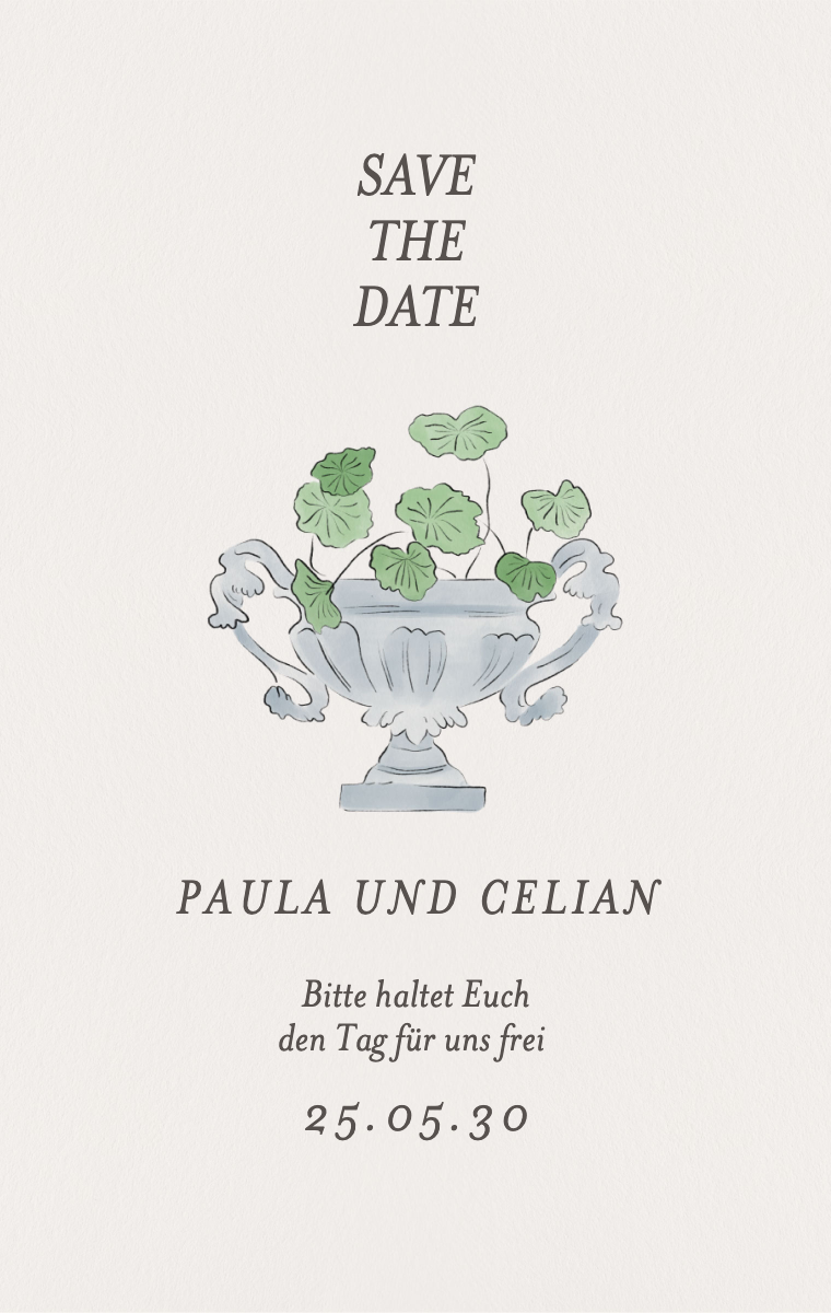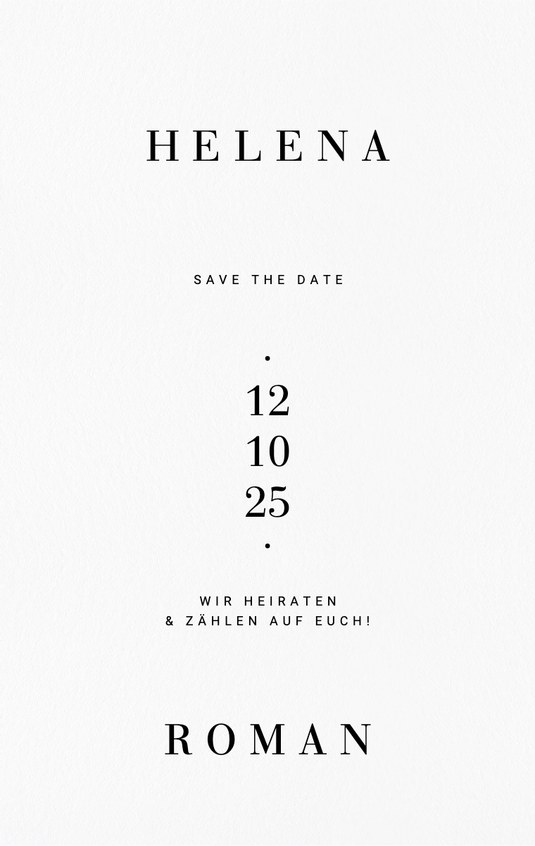 Bereiten Sie Ihren besonderen Tag stilvoll vor! Unsere virtuellen Save The Date Karten sind so gestaltet, dass sie Ihr Hochzeitsdatum elegant und unvergesslich ankündigen. Stellen Sie sicher, dass Ihre Lieben dieses außergewöhnliche Datum jetzt reservieren, mit unseren einfach zu sendenden und zu teilenden Online-Einladungen.