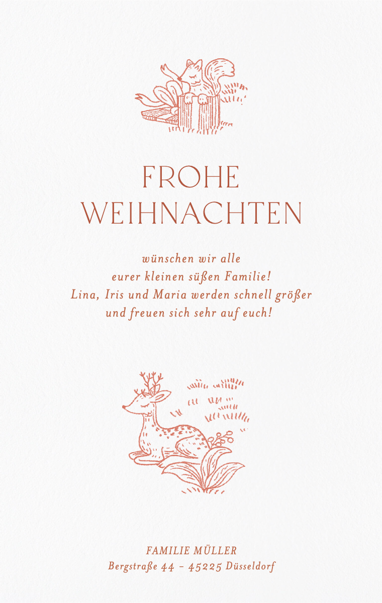 Verschicken Sie digitale Weihnachtskarten und persönliche Grüße an Ihre Liebsten, um die festliche Stimmung zu verbreiten. Gestalten Sie individuelle Botschaften, fügen Sie Fotos hinzu und senden Sie Ihre Wünsche direkt an Freunde und Familie – ganz gleich, wo sie sind. Erfüllen Sie ihre Postfächer mit Freude durch Weihnachtskarten, die Sie per E-Mail, SMS oder als Nachricht teilen können.
