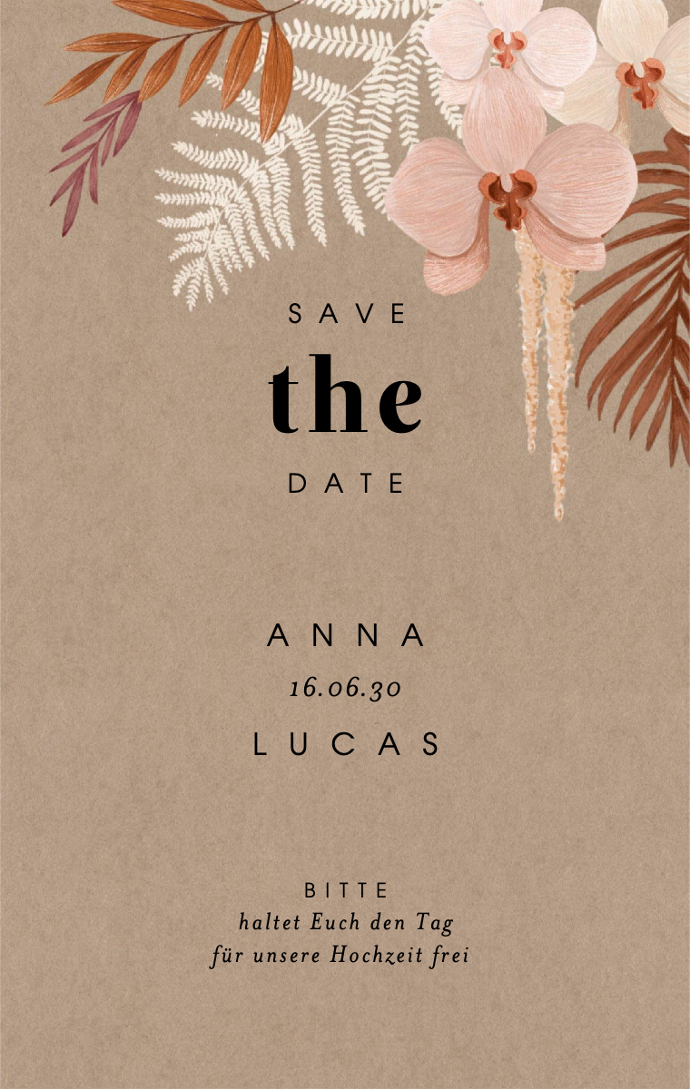 Bereiten Sie Ihren besonderen Tag stilvoll vor! Unsere virtuellen Save The Date Karten sind so gestaltet, dass sie Ihr Hochzeitsdatum elegant und unvergesslich ankündigen. Stellen Sie sicher, dass Ihre Lieben dieses außergewöhnliche Datum jetzt reservieren, mit unseren einfach zu sendenden und zu teilenden Online-Einladungen.