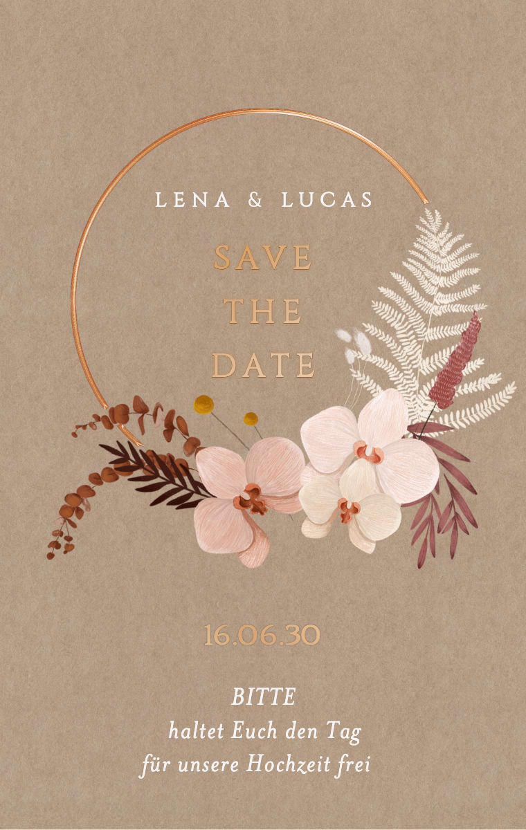 Bereiten Sie Ihren besonderen Tag stilvoll vor! Unsere virtuellen Save The Date Karten sind so gestaltet, dass sie Ihr Hochzeitsdatum elegant und unvergesslich ankündigen. Stellen Sie sicher, dass Ihre Lieben dieses außergewöhnliche Datum jetzt reservieren, mit unseren einfach zu sendenden und zu teilenden Online-Einladungen.