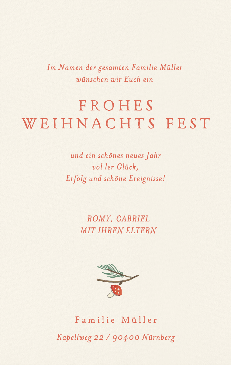 Verschicken Sie digitale Weihnachtskarten und persönliche Grüße an Ihre Liebsten, um die festliche Stimmung zu verbreiten. Gestalten Sie individuelle Botschaften, fügen Sie Fotos hinzu und senden Sie Ihre Wünsche direkt an Freunde und Familie – ganz gleich, wo sie sind. Erfüllen Sie ihre Postfächer mit Freude durch Weihnachtskarten, die Sie per E-Mail, SMS oder als Nachricht teilen können.