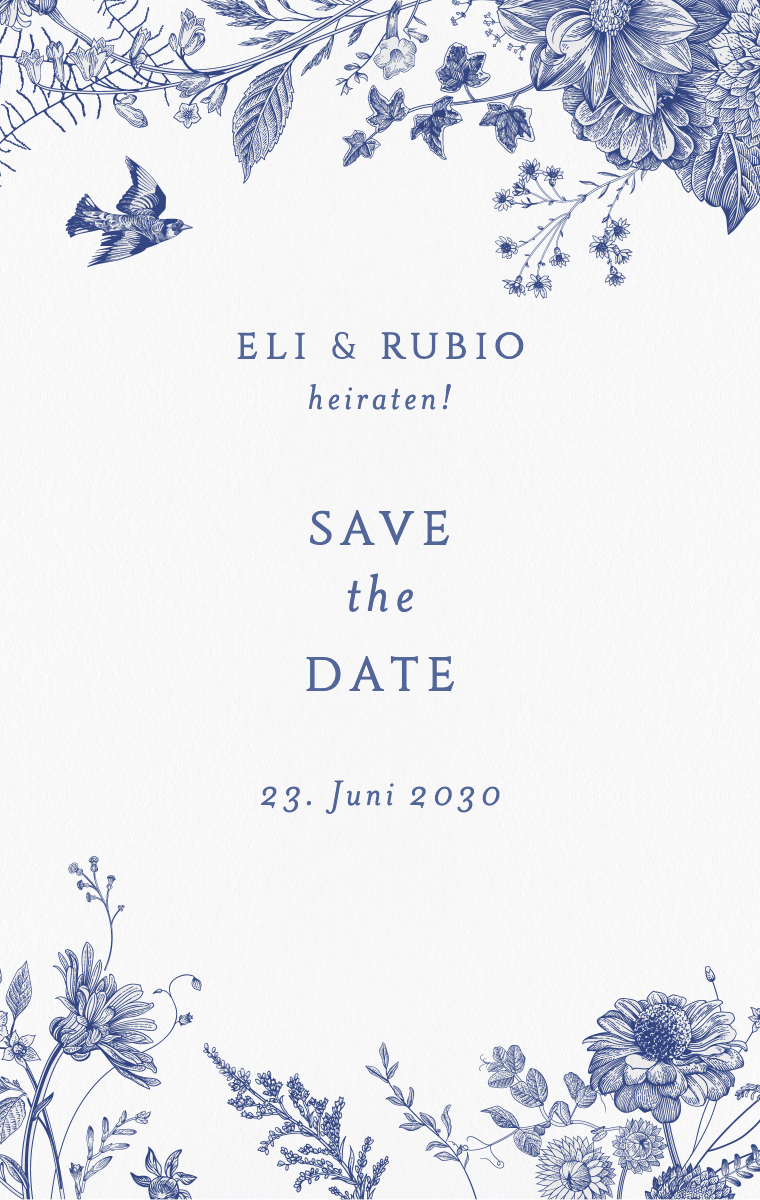 Bereiten Sie Ihren besonderen Tag stilvoll vor! Unsere virtuellen Save The Date Karten sind so gestaltet, dass sie Ihr Hochzeitsdatum elegant und unvergesslich ankündigen. Stellen Sie sicher, dass Ihre Lieben dieses außergewöhnliche Datum jetzt reservieren, mit unseren einfach zu sendenden und zu teilenden Online-Einladungen.