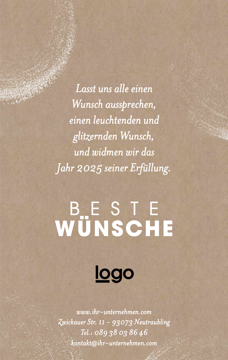 Stärken Sie Ihre Geschäftsbeziehungen mit unseren eleganten und personalisierten virtuellen Grußkarten. Wünschen Sie Ihren Kunden und Partnern ein erfolgreiches Jahr mit herzlichen Nachrichten und professionellen Designs. Zeigen Sie Ihre Wertschätzung und heben Sie sich mit Klasse ab, mit unseren Online-Grußkarten.