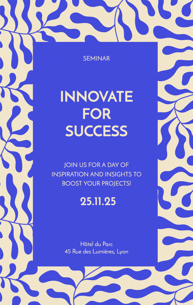 Welcome your guests to your conference or training event with our professional and customizable digital seminar cards. Add your logo, share easily, and track RSVPs for free.