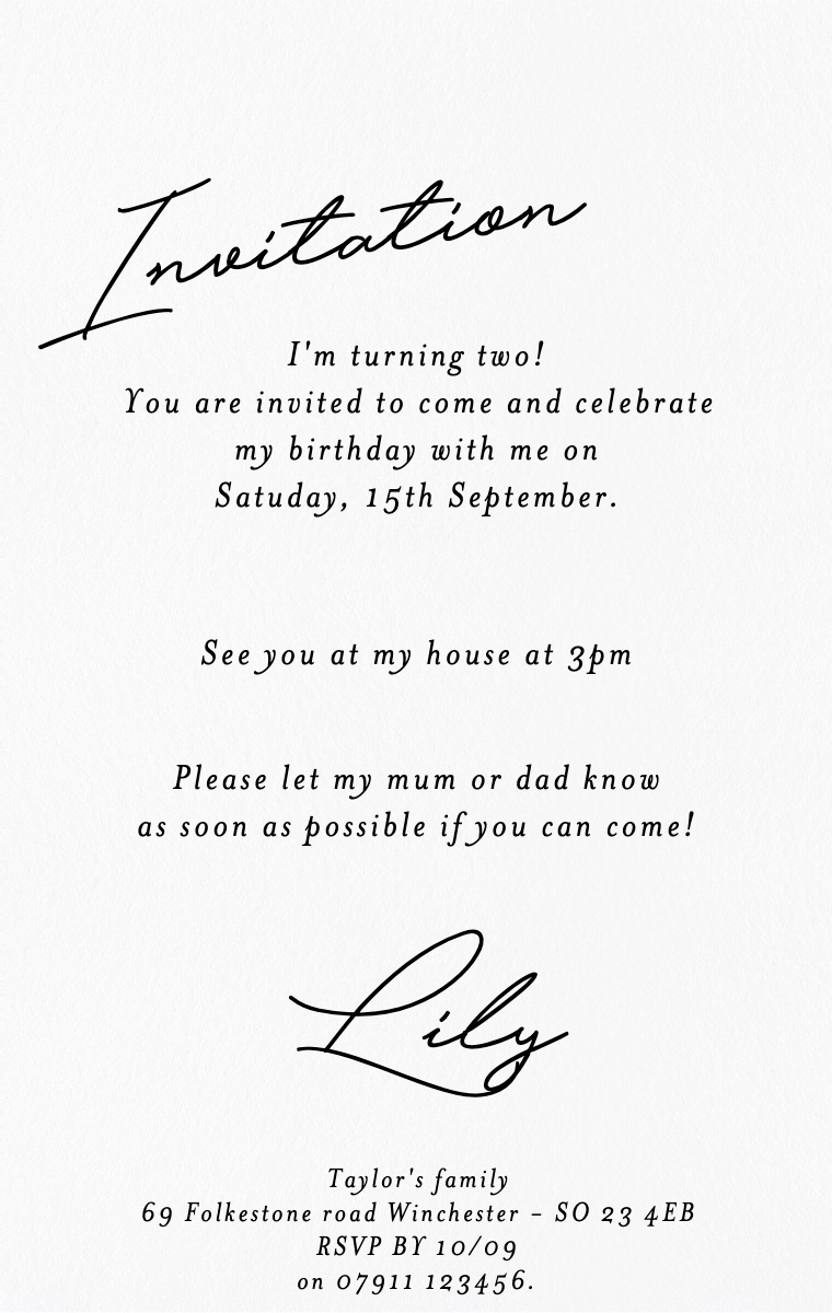 Make your child's birthday a magical moment with our personalized virtual invitations. Colorful and fun designs that will set the tone for an unforgettable party. Invite friends to celebrate with style and enthusiasm using our easy-to-create and distribute online invitation cards.