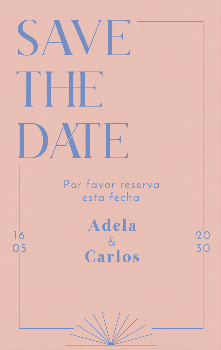 ¡Prepara tu día especial con estilo! Nuestras tarjetas virtuales Save The Date están diseñadas para anunciar la fecha de tu boda de manera elegante e inolvidable. Asegúrate de que tus seres queridos reserven esta fecha excepcional ahora con nuestras invitaciones en línea fáciles de enviar y compartir.