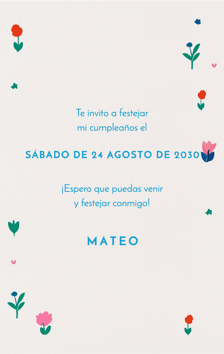 Haz que el cumpleaños de tu hijo sea un momento mágico con nuestras invitaciones virtuales personalizadas. Diseños coloridos y divertidos que marcarán el tono para una fiesta inolvidable. Invita a los amigos a celebrar con estilo y entusiasmo utilizando nuestras tarjetas de invitación en línea fáciles de crear y distribuir.