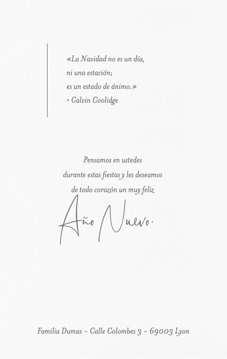 Envía tarjetas de Feliz Año Nuevo digitales y saludos personalizados a tus seres queridos para celebrar la magia de la temporada navideña. Personaliza tus mensajes, añade fotos y comparte tus buenos deseos al instante con amigos y familiares, sin importar dónde se encuentren. Llena su día de alegría con tarjetas de Navidad que puedes enviar por correo electrónico, mensaje de texto o compartir.