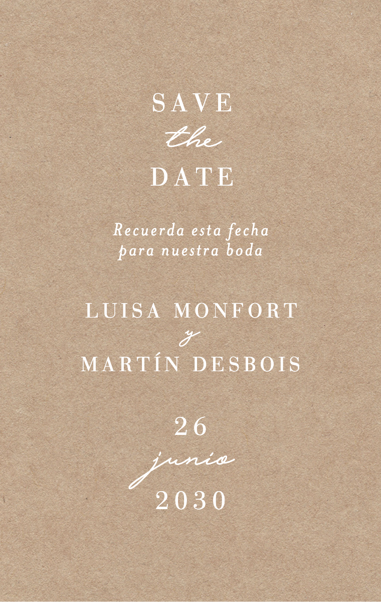 ¡Prepara tu día especial con estilo! Nuestras tarjetas virtuales Save The Date están diseñadas para anunciar la fecha de tu boda de manera elegante e inolvidable. Asegúrate de que tus seres queridos reserven esta fecha excepcional ahora con nuestras invitaciones en línea fáciles de enviar y compartir.