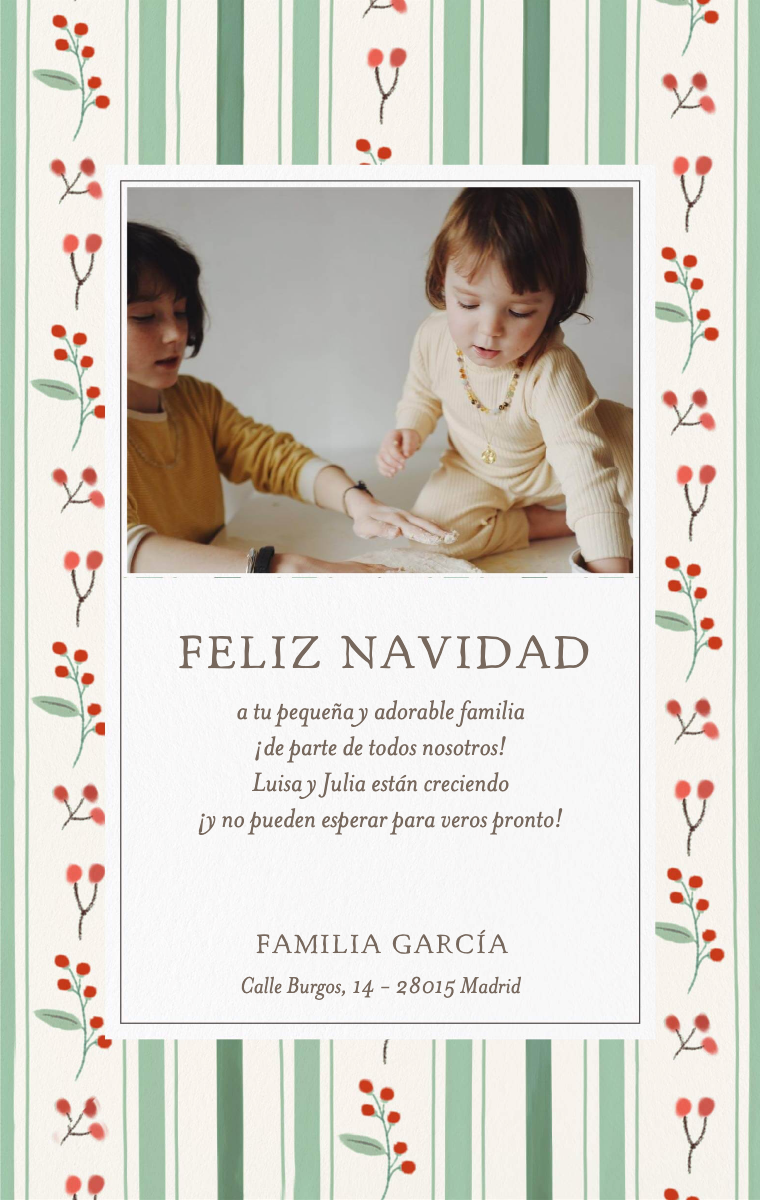 Envía tarjetas de Navidad digitales y saludos personalizados a tus seres queridos para celebrar la magia de la temporada navideña. Personaliza tus mensajes, añade fotos y comparte tus buenos deseos al instante con amigos y familiares, sin importar dónde se encuentren. Llena su día de alegría con tarjetas de Navidad que puedes enviar por correo electrónico, mensaje de texto o compartir.