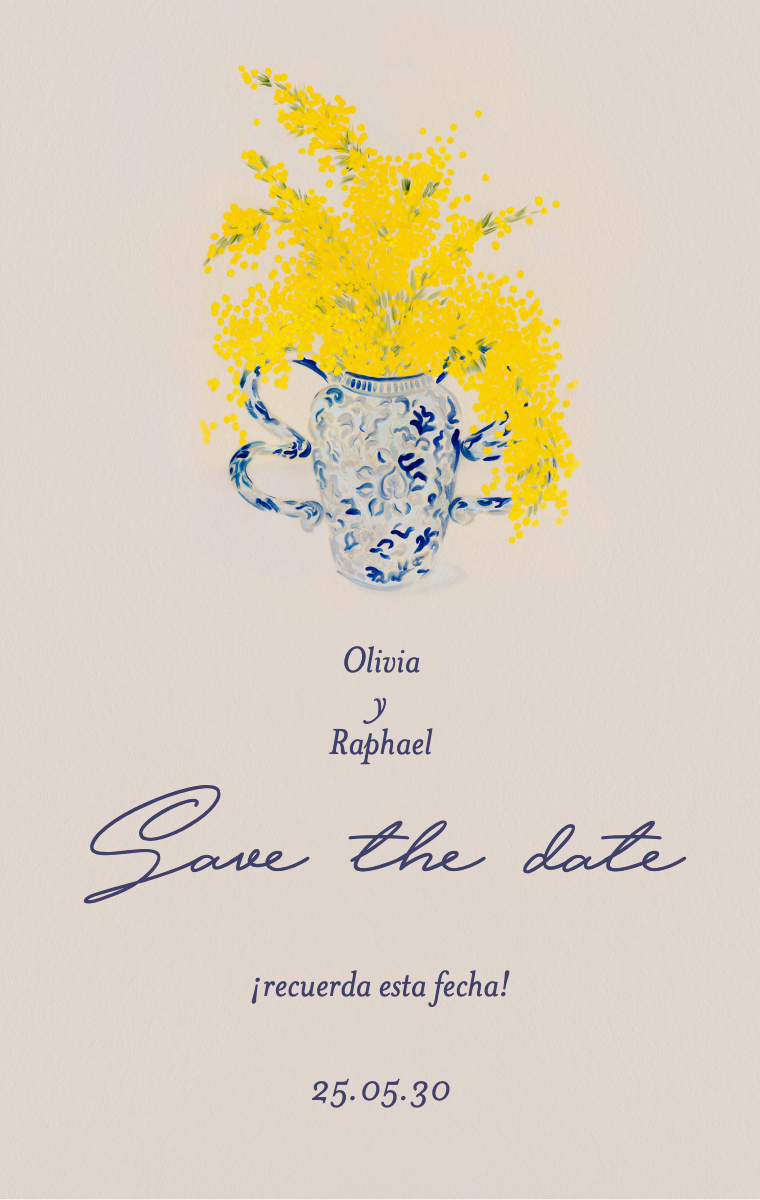 ¡Prepara tu día especial con estilo! Nuestras tarjetas virtuales Save The Date están diseñadas para anunciar la fecha de tu boda de manera elegante e inolvidable. Asegúrate de que tus seres queridos reserven esta fecha excepcional ahora con nuestras invitaciones en línea fáciles de enviar y compartir.
