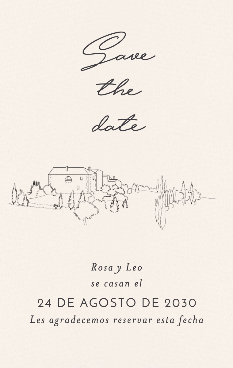 ¡Prepara tu día especial con estilo! Nuestras tarjetas virtuales Save The Date están diseñadas para anunciar la fecha de tu boda de manera elegante e inolvidable. Asegúrate de que tus seres queridos reserven esta fecha excepcional ahora con nuestras invitaciones en línea fáciles de enviar y compartir.