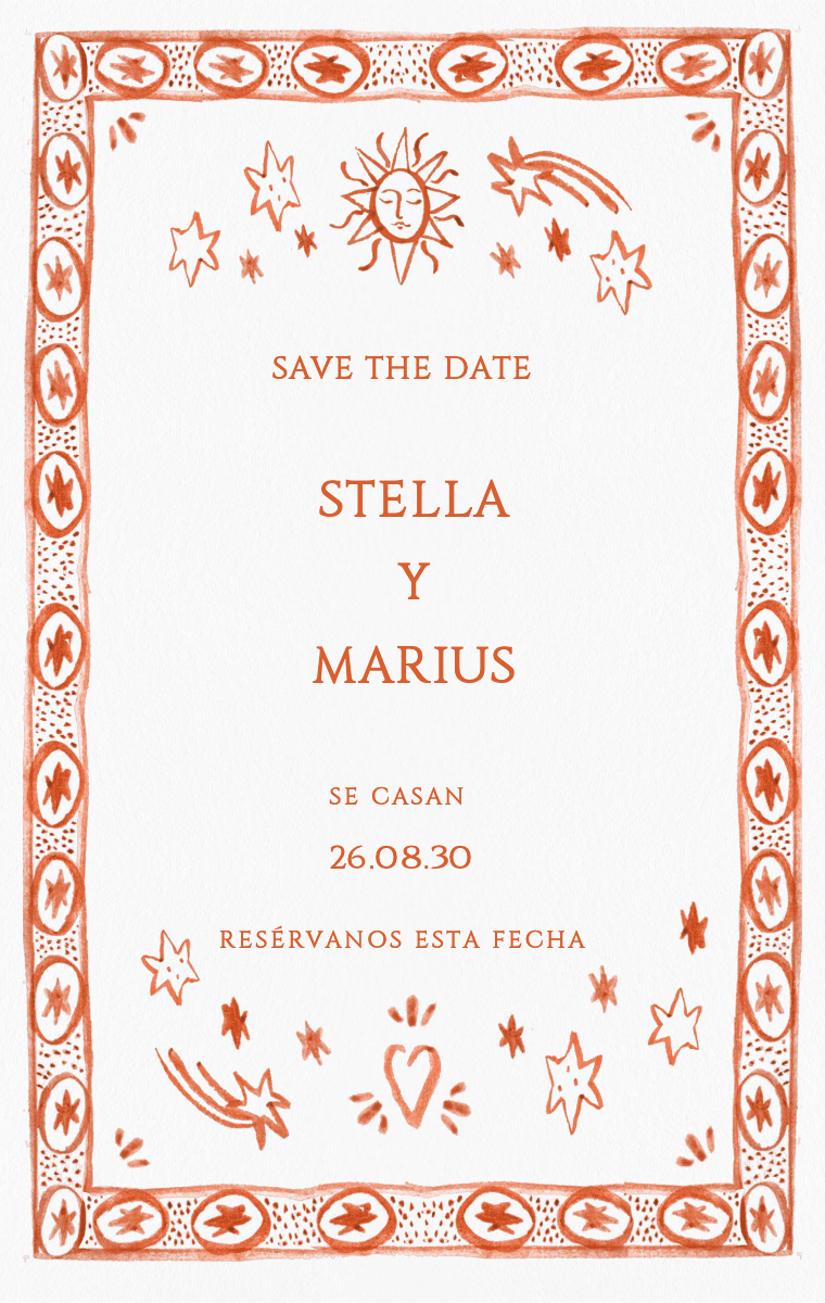 ¡Prepara tu día especial con estilo! Nuestras tarjetas virtuales Save The Date están diseñadas para anunciar la fecha de tu boda de manera elegante e inolvidable. Asegúrate de que tus seres queridos reserven esta fecha excepcional ahora con nuestras invitaciones en línea fáciles de enviar y compartir.