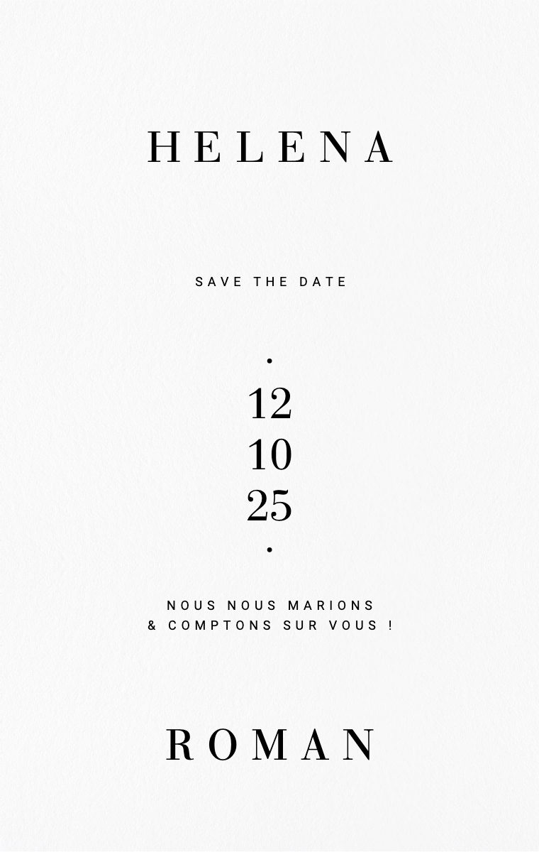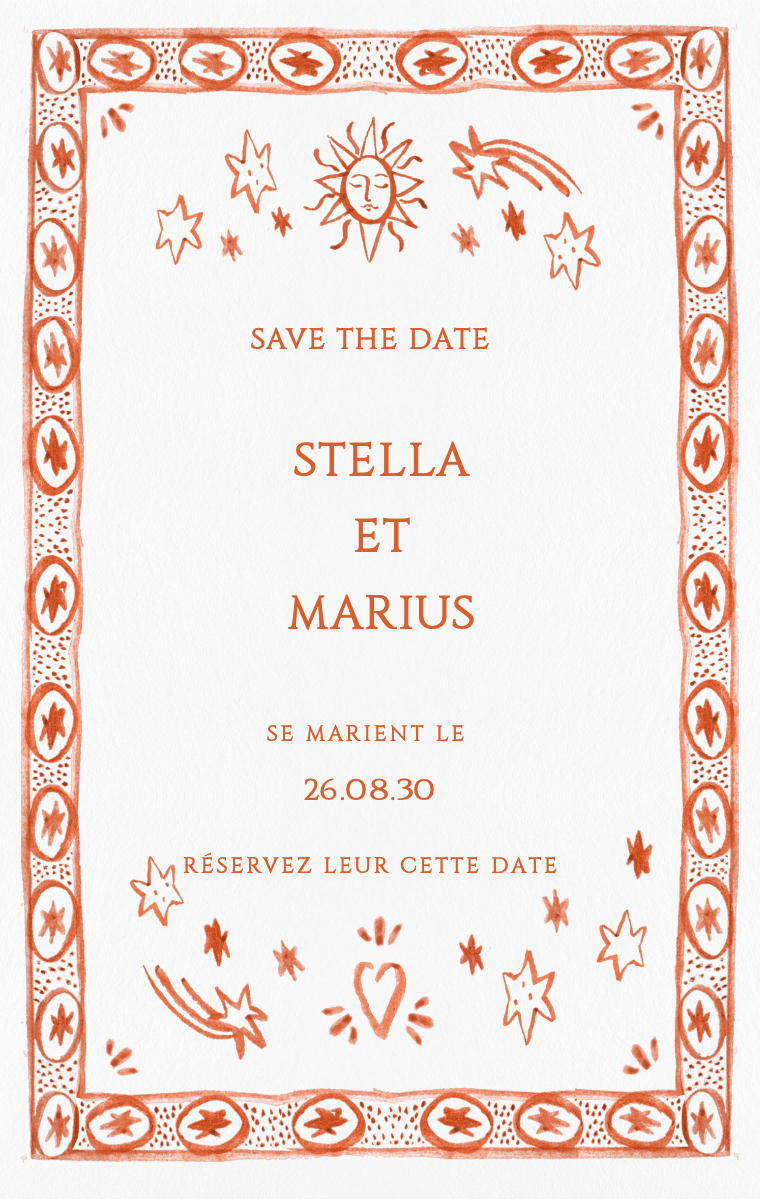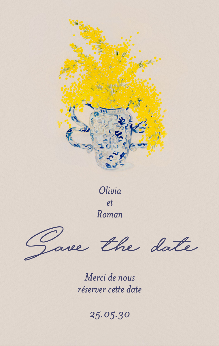 Préparez votre journée spéciale avec style ! Nos cartes Save The Date virtuelles sont conçues pour annoncer la date de votre mariage de manière élégante et mémorable. Assurez-vous que vos proches réservent cette date exceptionnelle dès maintenant avec nos invitations en ligne faciles à envoyer et à partager.