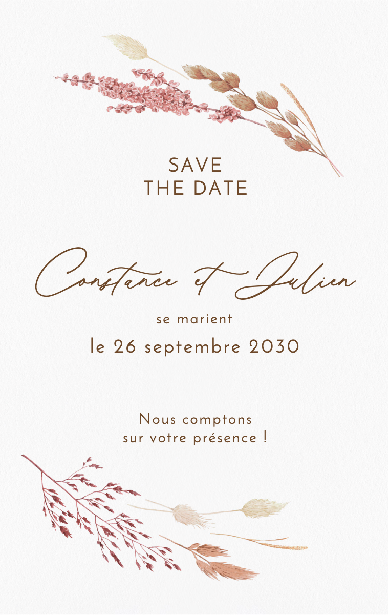 Préparez votre journée spéciale avec style ! Nos cartes Save The Date virtuelles sont conçues pour annoncer la date de votre mariage de manière élégante et mémorable. Assurez-vous que vos proches réservent cette date exceptionnelle dès maintenant avec nos invitations en ligne faciles à envoyer et à partager.