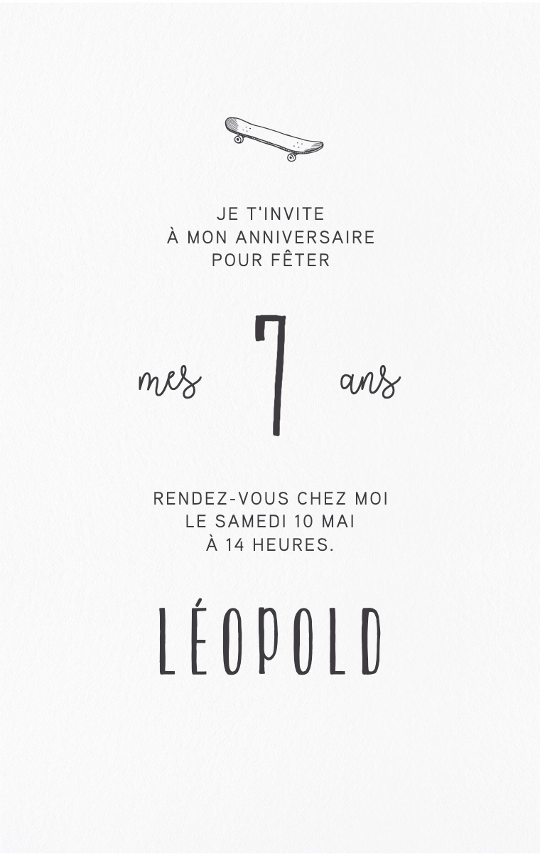 Faites de l'anniversaire de votre enfant un moment magique avec nos invitations virtuelles personnalisées. Des designs colorés et amusants qui donneront le ton pour une fête inoubliable. Invitez vos amis à célébrer avec style et enthousiasme grâce à nos cartes d'invitation en ligne faciles à créer et à distribuer.