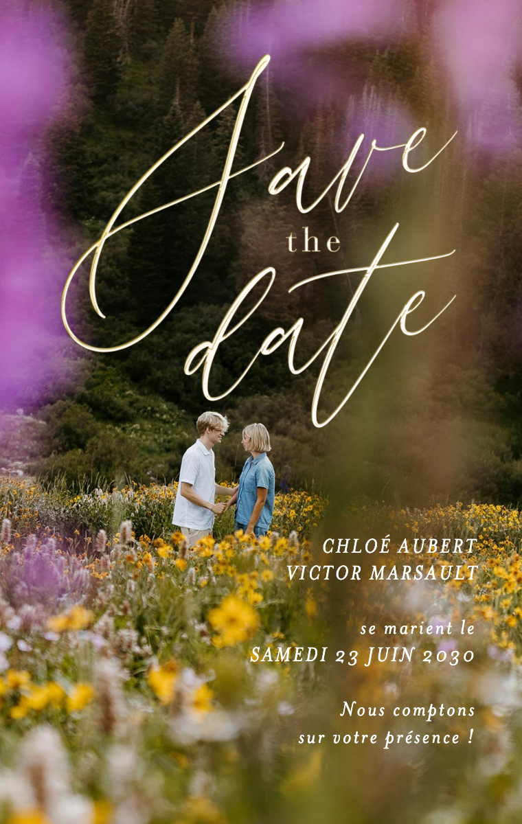 Préparez votre journée spéciale avec style ! Nos cartes Save The Date virtuelles sont conçues pour annoncer la date de votre mariage de manière élégante et mémorable. Assurez-vous que vos proches réservent cette date exceptionnelle dès maintenant avec nos invitations en ligne faciles à envoyer et à partager.