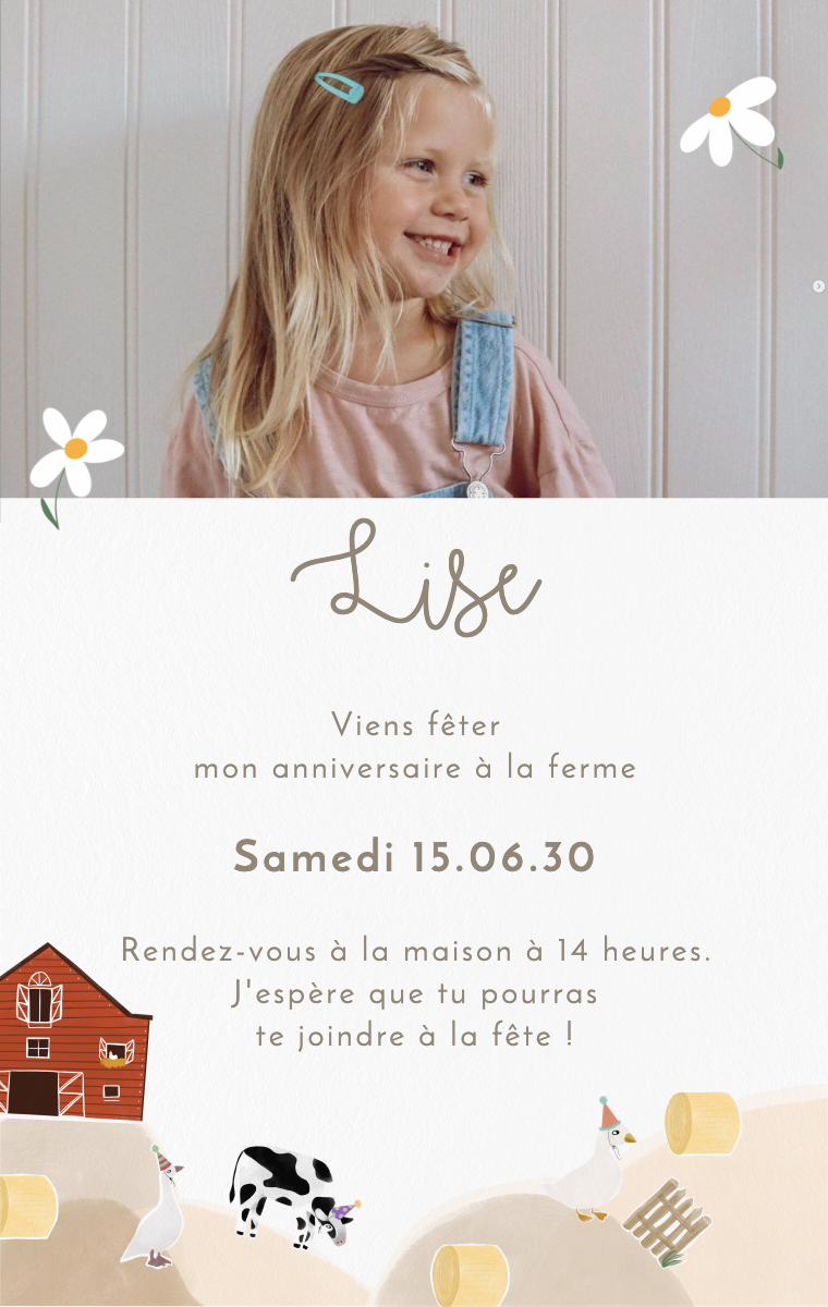 Faites de l'anniversaire de votre enfant un moment magique avec nos invitations virtuelles personnalisées. Des designs colorés et amusants qui donneront le ton pour une fête inoubliable. Invitez vos amis à célébrer avec style et enthousiasme grâce à nos cartes d'invitation en ligne faciles à créer et à distribuer.
