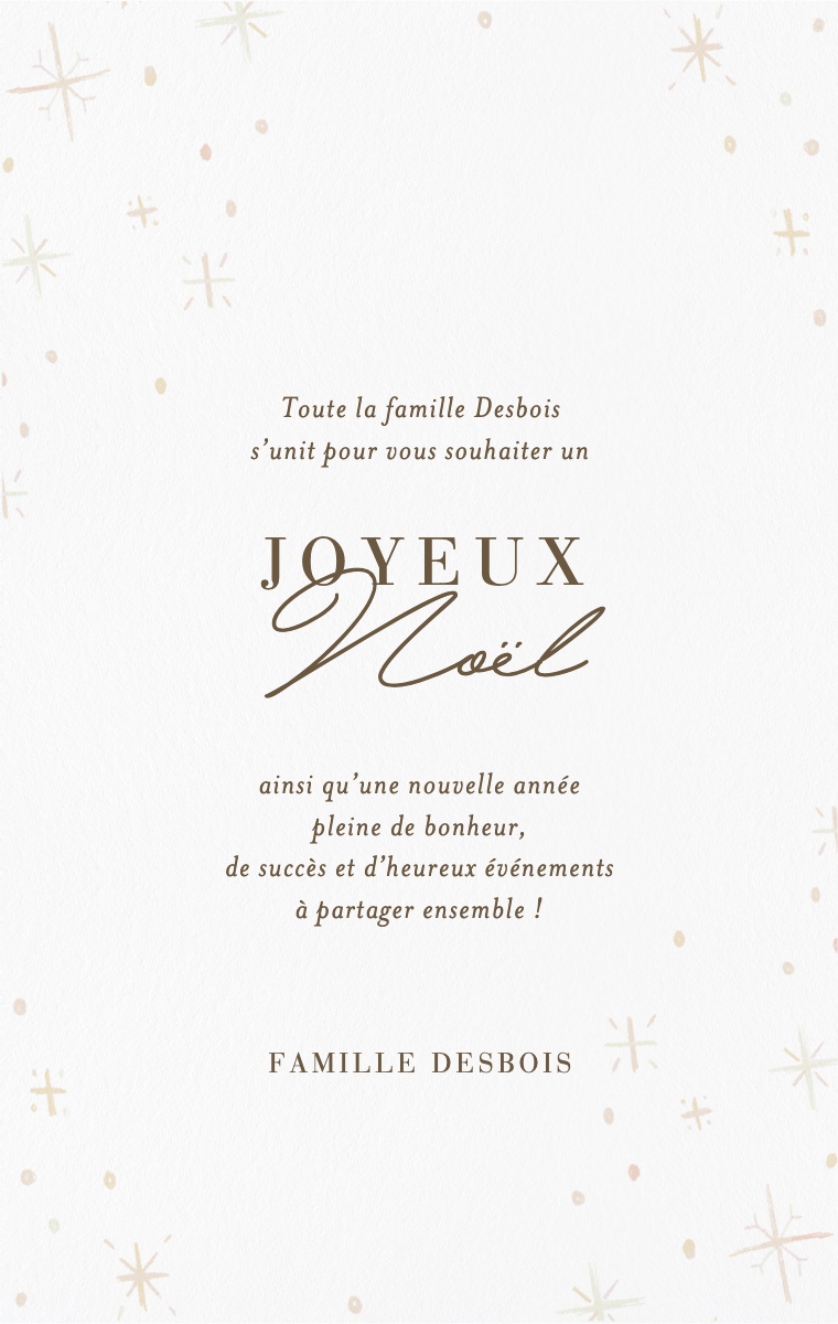 Envoyez des cartes de Noël digitales et des vœux personnalisés à vos proches pour célébrer la magie des fêtes. Personnalisez vos messages, ajoutez des photos et partagez vos vœux instantanément avec vos amis et votre famille, où qu'ils se trouvent. Partagez la joie des fêtes avec des cartes de Noël que vous pouvez envoyer par email, SMS ou partager.