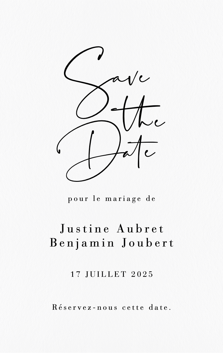 Préparez votre journée spéciale avec style ! Nos cartes Save The Date virtuelles sont conçues pour annoncer la date de votre mariage de manière élégante et mémorable. Assurez-vous que vos proches réservent cette date exceptionnelle dès maintenant avec nos invitations en ligne faciles à envoyer et à partager.