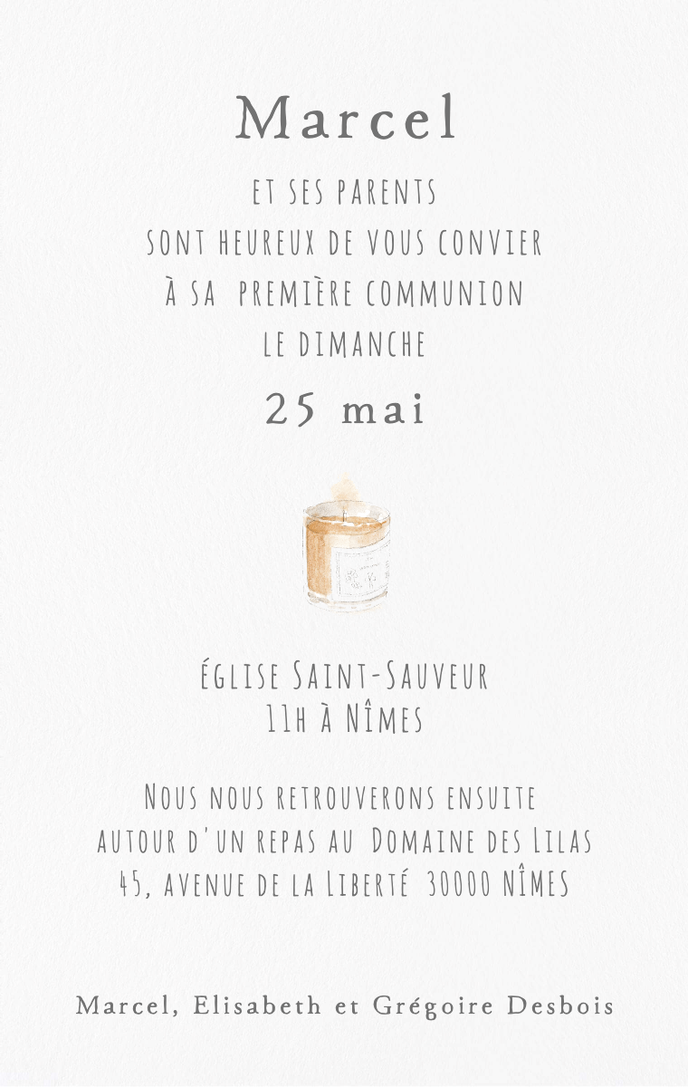 Préparez votre journée spéciale avec style ! Nos cartes d'invitation virtuelles sont conçues pour annoncer la date de sa communion de manière élégante et mémorable. Assurez-vous que vos proches réservent cette date exceptionnelle dès maintenant avec nos invitations en ligne faciles à envoyer et à partager.