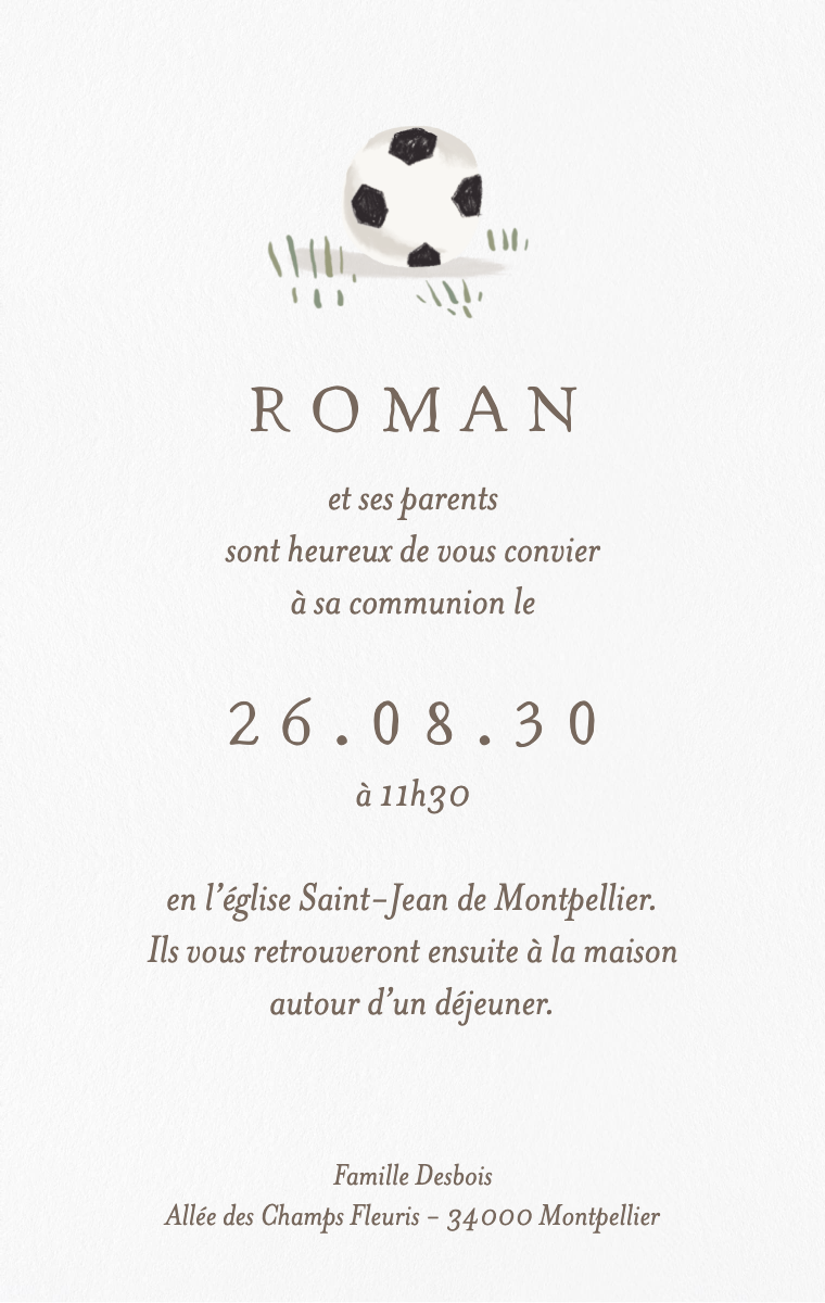 Préparez votre journée spéciale avec style ! Nos cartes d'invitation virtuelles sont conçues pour annoncer la date de sa communion de manière élégante et mémorable. Assurez-vous que vos proches réservent cette date exceptionnelle dès maintenant avec nos invitations en ligne faciles à envoyer et à partager.