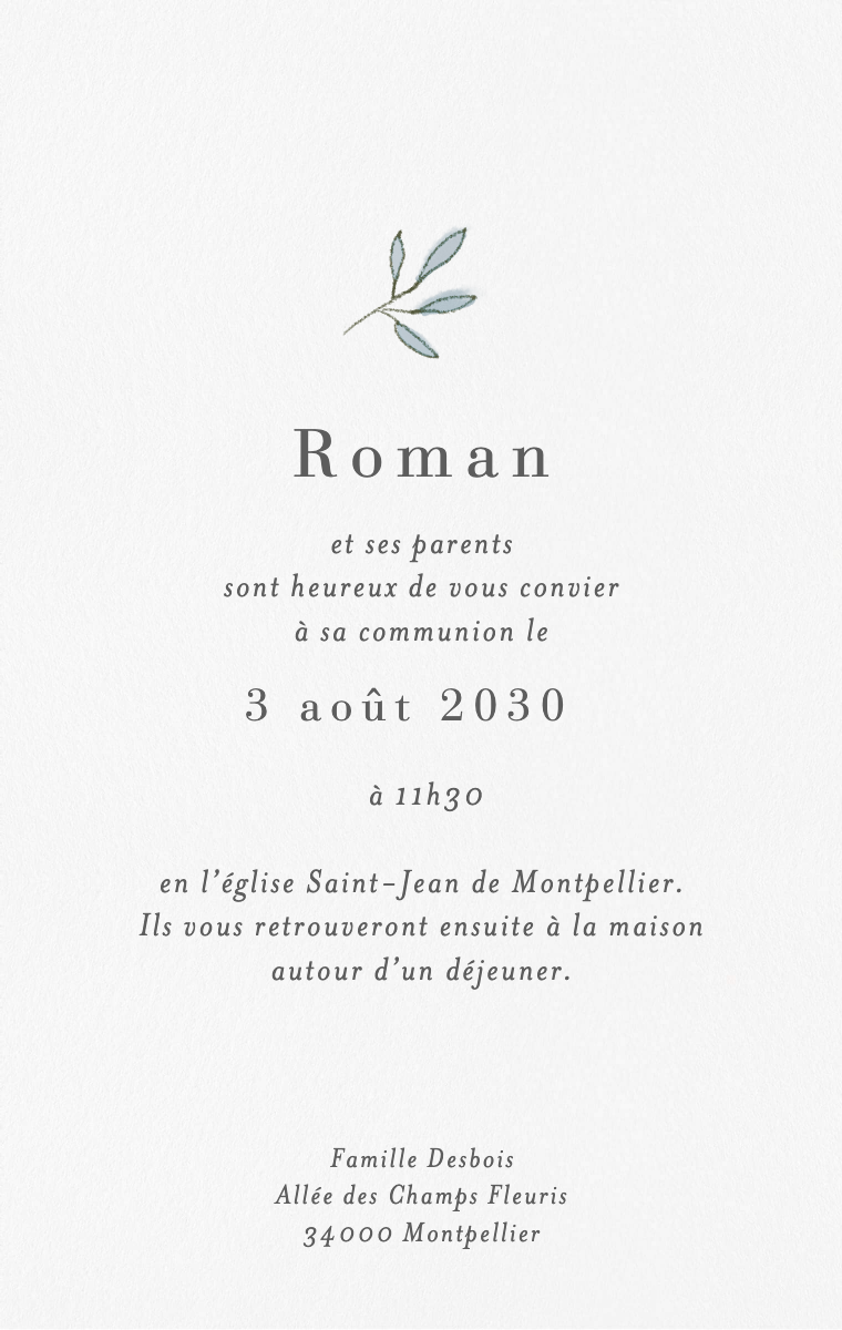 Préparez votre journée spéciale avec style ! Nos cartes d'invitation virtuelles sont conçues pour annoncer la date de sa communion de manière élégante et mémorable. Assurez-vous que vos proches réservent cette date exceptionnelle dès maintenant avec nos invitations en ligne faciles à envoyer et à partager.