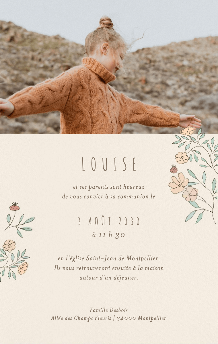 Préparez votre journée spéciale avec style ! Nos cartes d'invitation virtuelles sont conçues pour annoncer la date de sa communion de manière élégante et mémorable. Assurez-vous que vos proches réservent cette date exceptionnelle dès maintenant avec nos invitations en ligne faciles à envoyer et à partager.