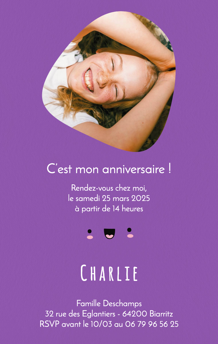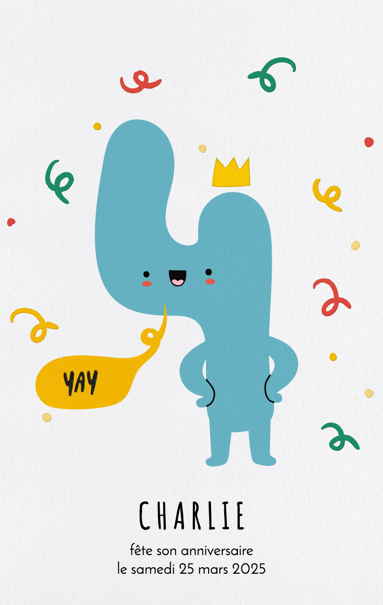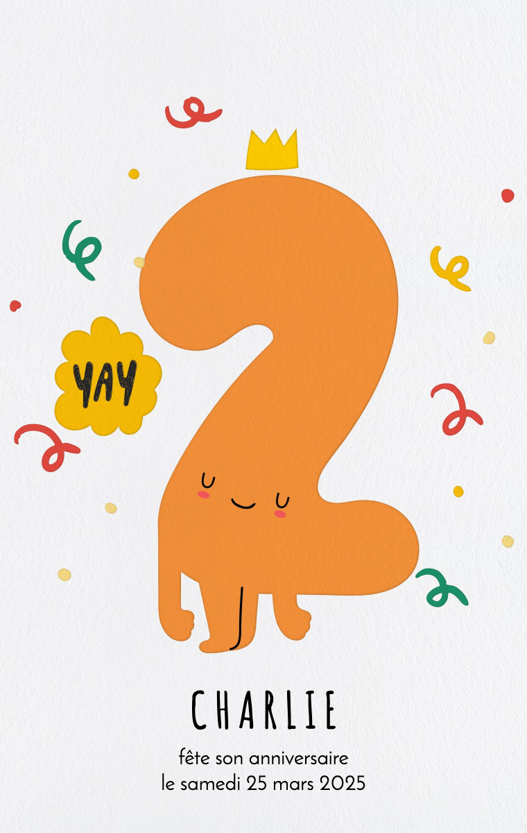 Faites de l'anniversaire de votre enfant un moment magique avec nos invitations virtuelles personnalisées. Des designs colorés et amusants qui donneront le ton pour une fête inoubliable. Invitez vos amis à célébrer avec style et enthousiasme grâce à nos cartes d'invitation en ligne faciles à créer et à distribuer.