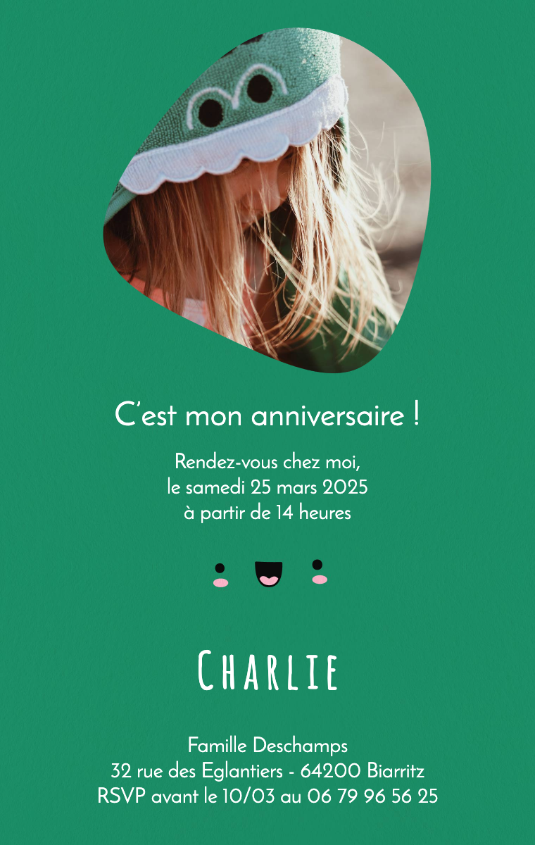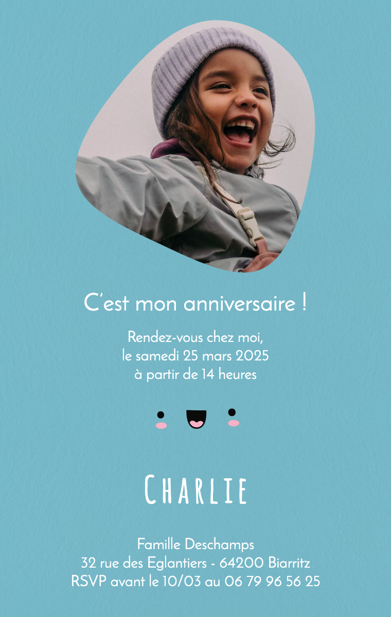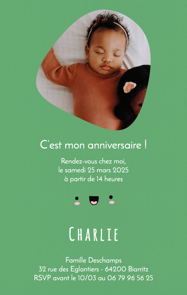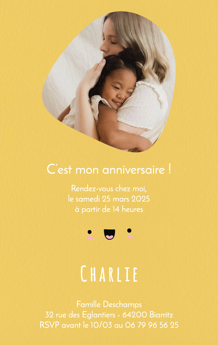 Faites de l'anniversaire de votre enfant un moment magique avec nos invitations virtuelles personnalisées. Des designs colorés et amusants qui donneront le ton pour une fête inoubliable. Invitez vos amis à célébrer avec style et enthousiasme grâce à nos cartes d'invitation en ligne faciles à créer et à distribuer.
