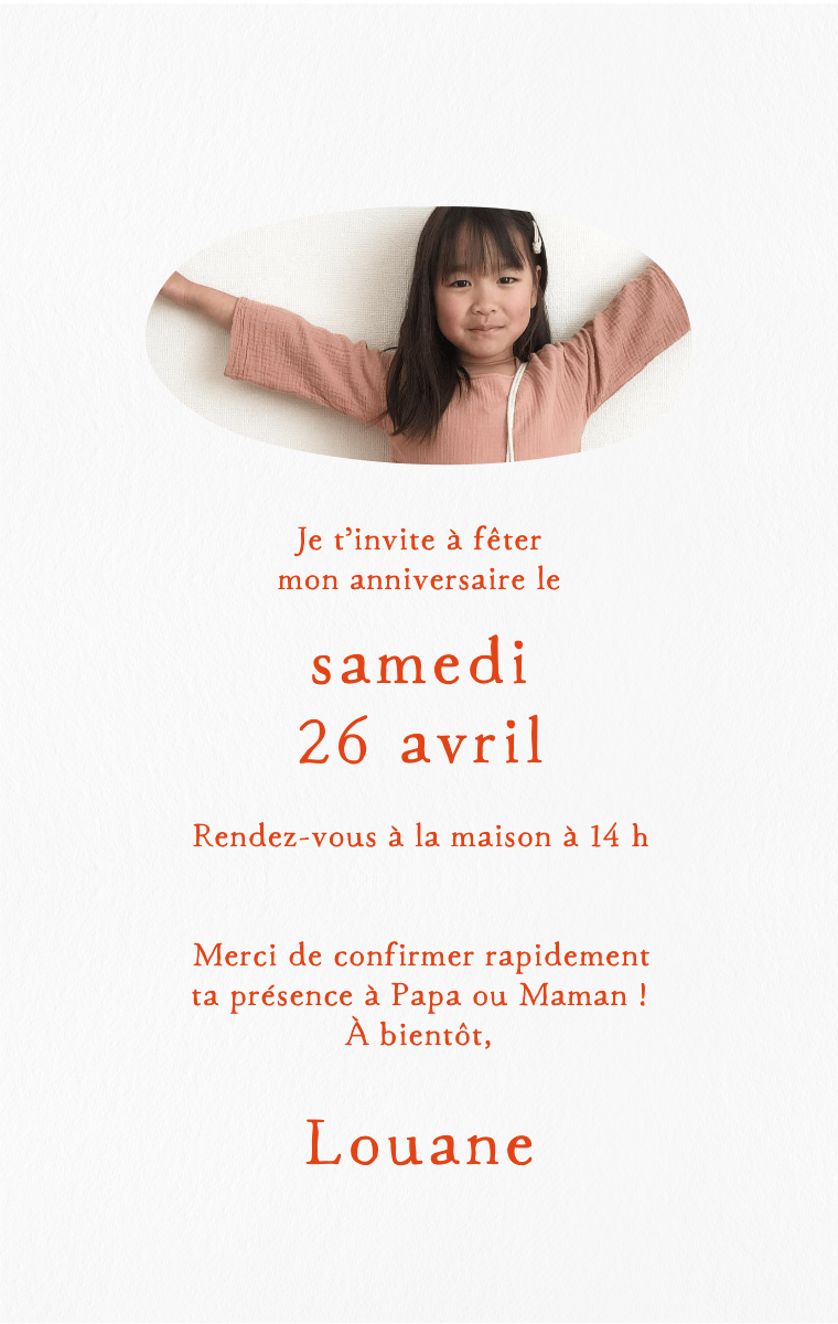 Faites de l'anniversaire de votre enfant un moment magique avec nos invitations virtuelles personnalisées. Des designs colorés et amusants qui donneront le ton pour une fête inoubliable. Invitez vos amis à célébrer avec style et enthousiasme grâce à nos cartes d'invitation en ligne faciles à créer et à distribuer.