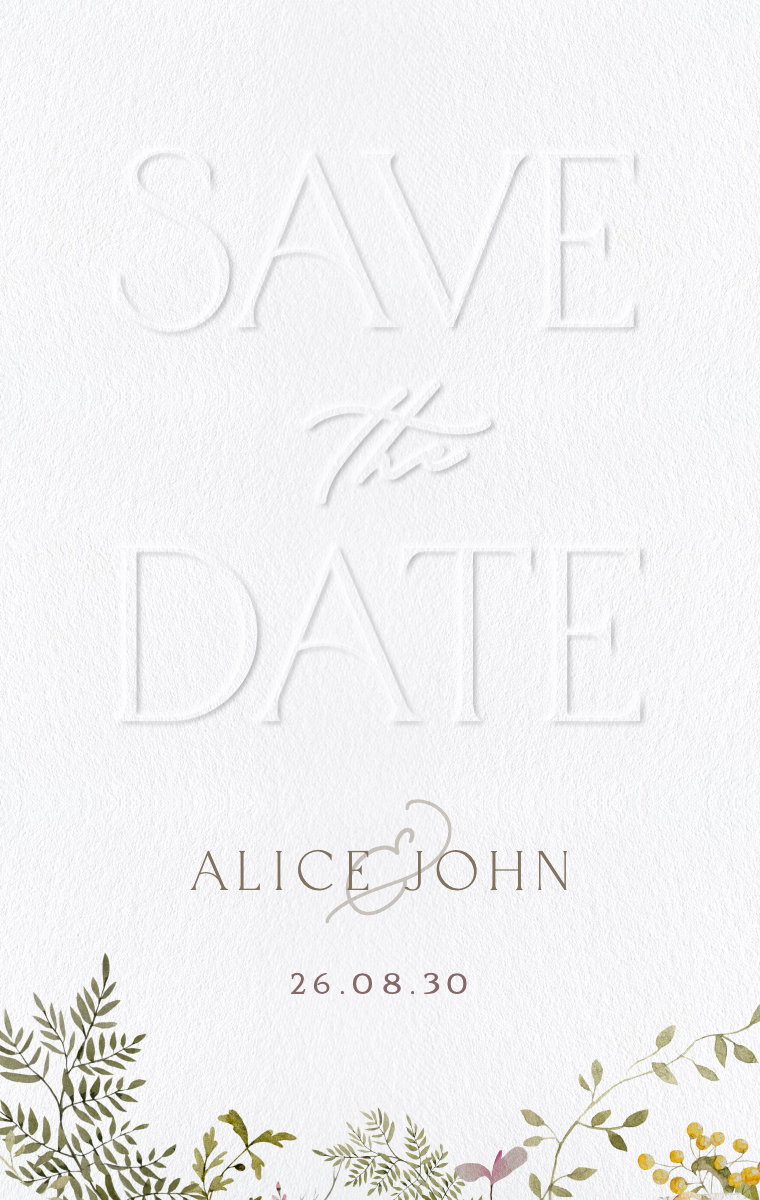 Préparez votre journée spéciale avec style ! Nos cartes Save The Date virtuelles sont conçues pour annoncer la date de votre mariage de manière élégante et mémorable. Assurez-vous que vos proches réservent cette date exceptionnelle dès maintenant avec nos invitations en ligne faciles à envoyer et à partager.