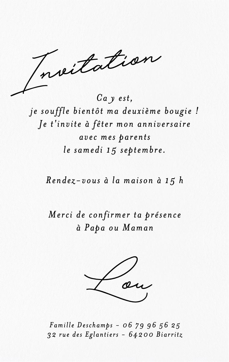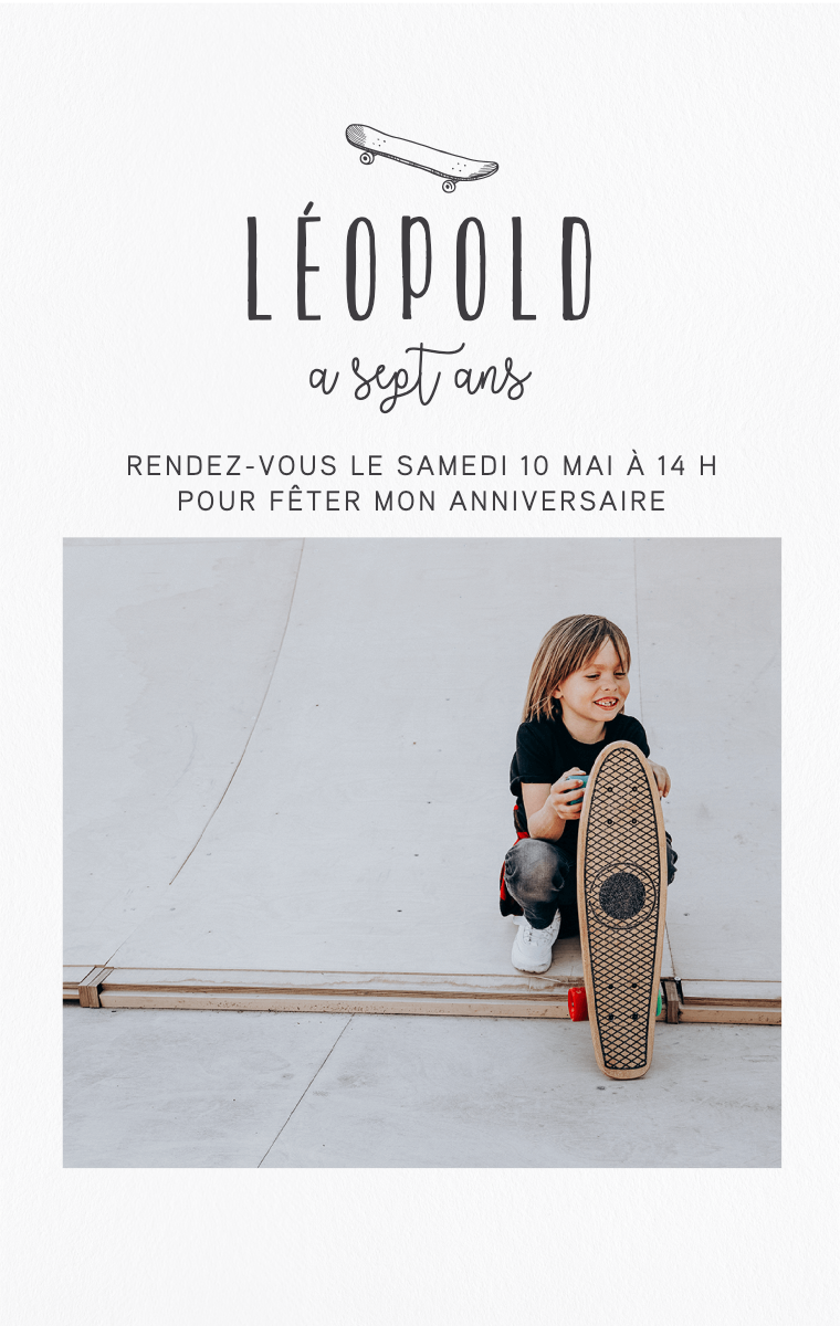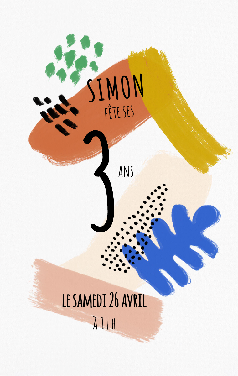 Faites de l'anniversaire de votre enfant un moment magique avec nos invitations virtuelles personnalisées. Des designs colorés et amusants qui donneront le ton pour une fête inoubliable. Invitez vos amis à célébrer avec style et enthousiasme grâce à nos cartes d'invitation en ligne faciles à créer et à distribuer.