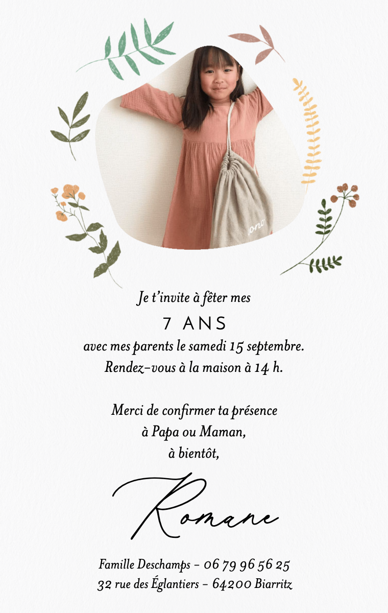 Faites de l'anniversaire de votre enfant un moment magique avec nos invitations virtuelles personnalisées. Des designs colorés et amusants qui donneront le ton pour une fête inoubliable. Invitez vos amis à célébrer avec style et enthousiasme grâce à nos cartes d'invitation en ligne faciles à créer et à distribuer.