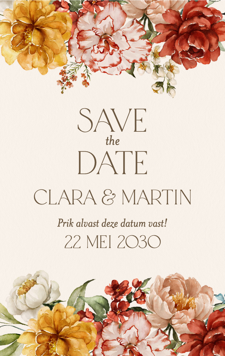 Bereid uw speciale dag stijlvol voor! Onze virtuele Save The Date kaarten zijn ontworpen om uw trouwdatum elegant en gedenkwaardig aan te kondigen. Zorg ervoor dat uw dierbaren deze bijzondere datum nu reserveren met onze gemakkelijk te verzenden en te delen online uitnodigingen.