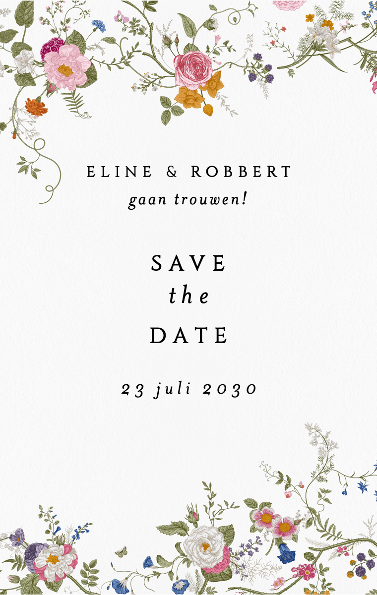 Bereid uw speciale dag stijlvol voor! Onze virtuele Save The Date kaarten zijn ontworpen om uw trouwdatum elegant en gedenkwaardig aan te kondigen. Zorg ervoor dat uw dierbaren deze bijzondere datum nu reserveren met onze gemakkelijk te verzenden en te delen online uitnodigingen.
