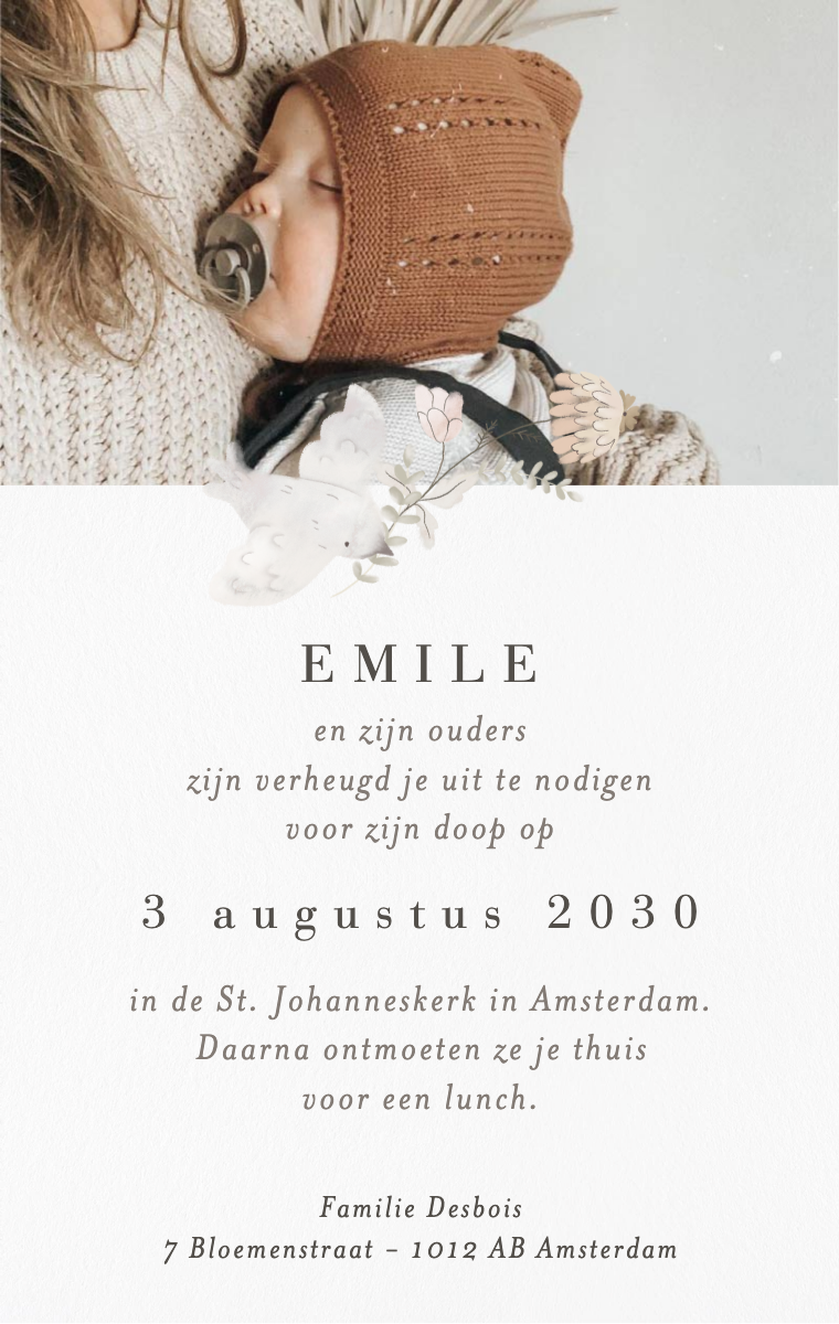 Bereid deze bijzondere viering stijlvol voor! Onze virtuele doopuitnodigingen zijn ontworpen om de datum van de doop van je kind elegant en gedenkwaardig aan te kondigen. Zorg ervoor dat je dierbaren dit speciale moment nu reserveren met onze gemakkelijk te verzenden en te delen online uitnodigingen.
