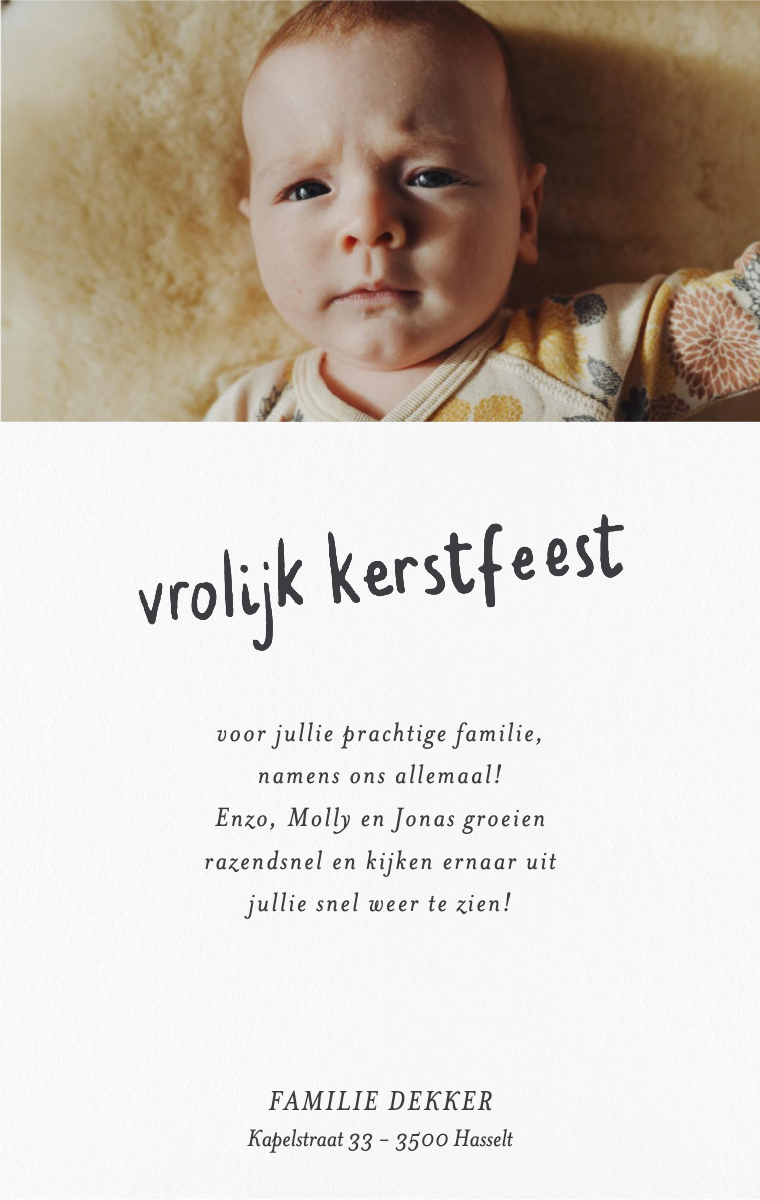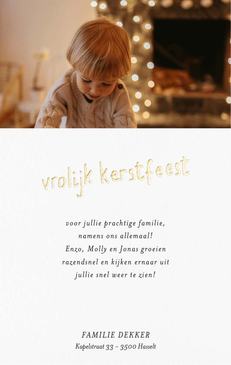 Stuur digitale kerstkaarten en gepersonaliseerde groeten naar je dierbaren om de magie van de feestdagen te vieren. Personaliseer je berichten, voeg foto’s toe en deel je wensen direct met vrienden en familie, waar ze zich ook bevinden. Vul hun inbox met vreugde met kerstkaarten die je kunt e-mailen, sms'en of delen.
